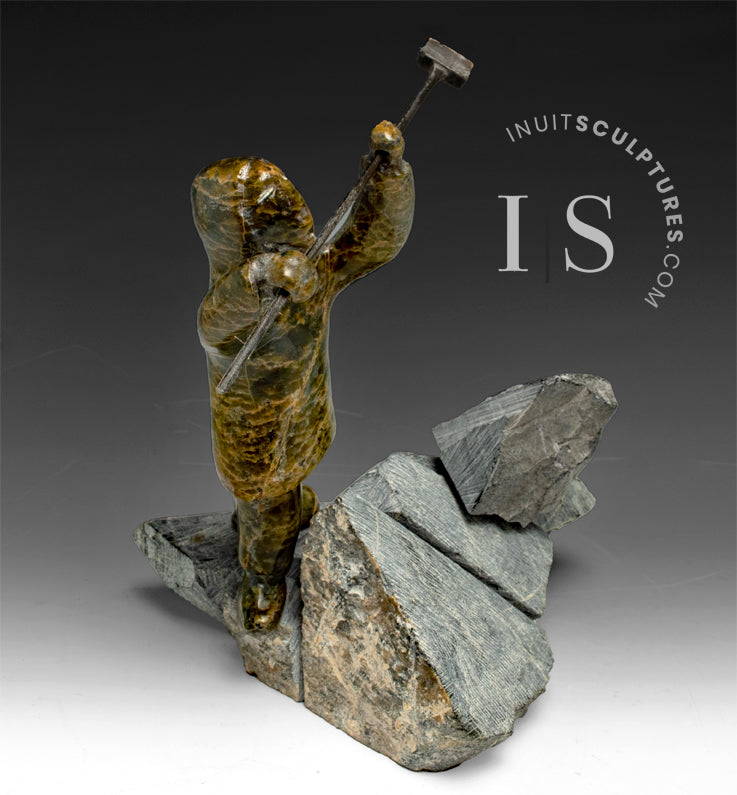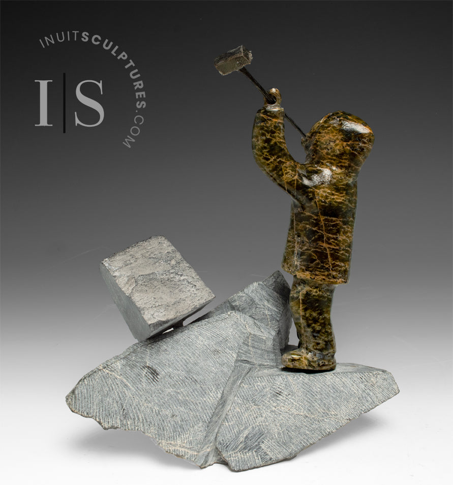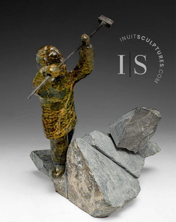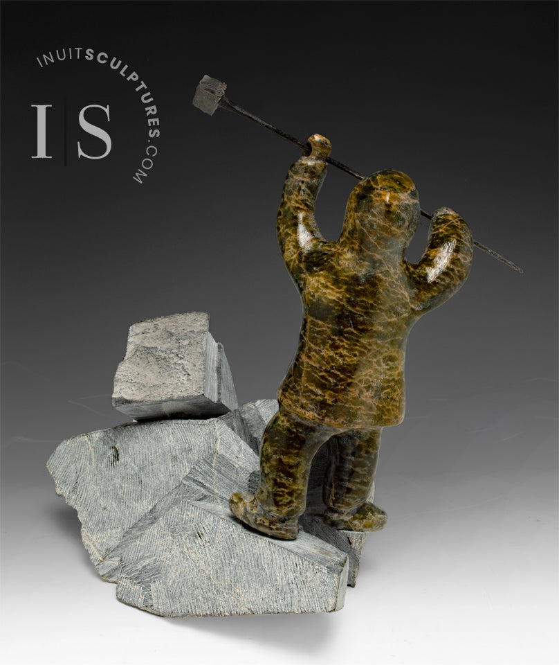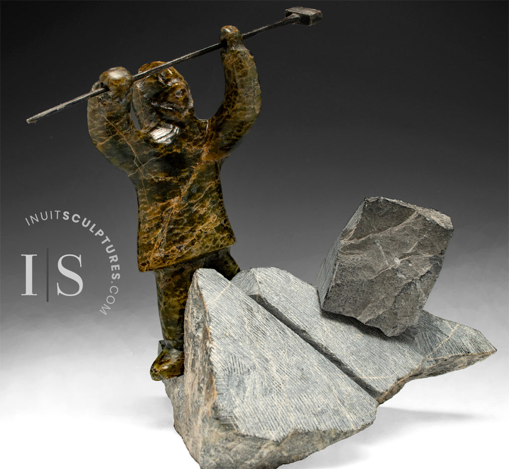 The reality is that the Inuit carvers must travel long miles often under dangerous conditions to saw or chip stone from open quarries.