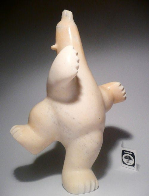 This is a superb and striking white dancing polar bear by master Inuit carver Johnny Manning from Cape Dorset.