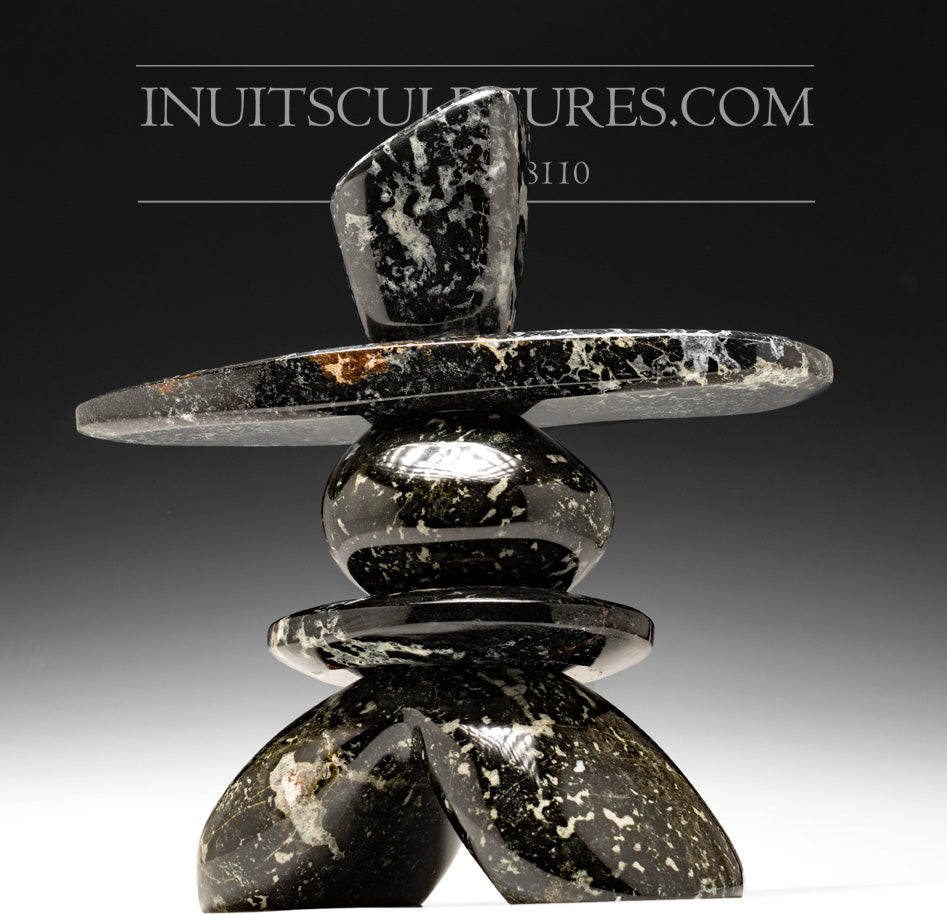 This is a gorgeously balanced inukshuk done in a striking serpentine stone. It has multiple colorations in the stone. The animation of Paul's Inukshuks are what really makes them stand out from all other Inukshuks.
