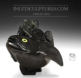 Toonoo began his tenure as a carver at the early age of ten, and entered his first exhibition while still in his teens. He is widely recognized as a major carving talent. This transformation subject is typical of his best work; it epitomizes the Cape Dorset aesthetic and shows off Toonoo's consummate technical skill, flair and humor.